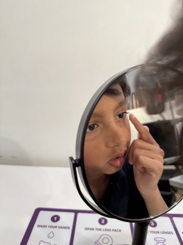 MiSight is specifically designed for children. The studies included kids aged 8–12 years old, but even five-year-olds have successfully learned how to wear contact lenses.